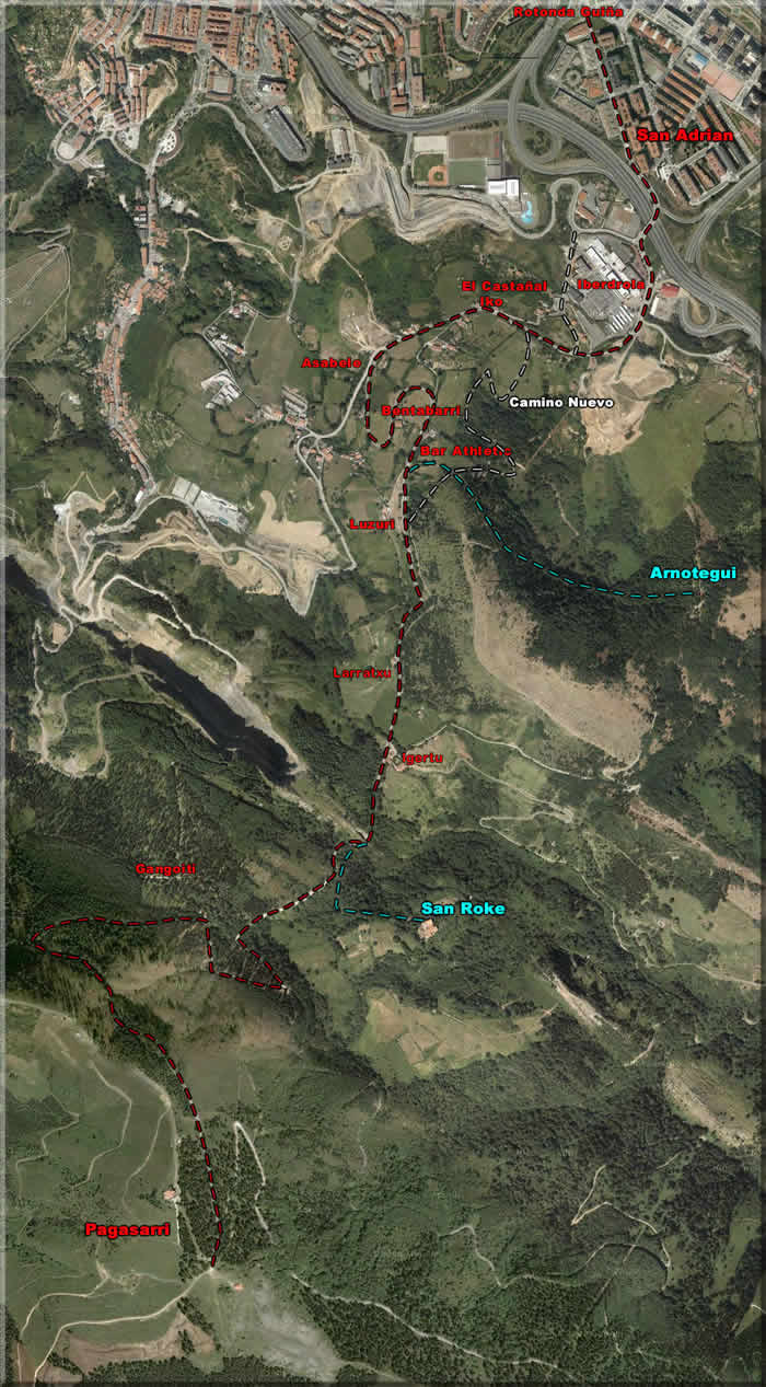 llegamos al caserio Guiña y a la nueva rotonda (San Adrián). En ésta hay que girar